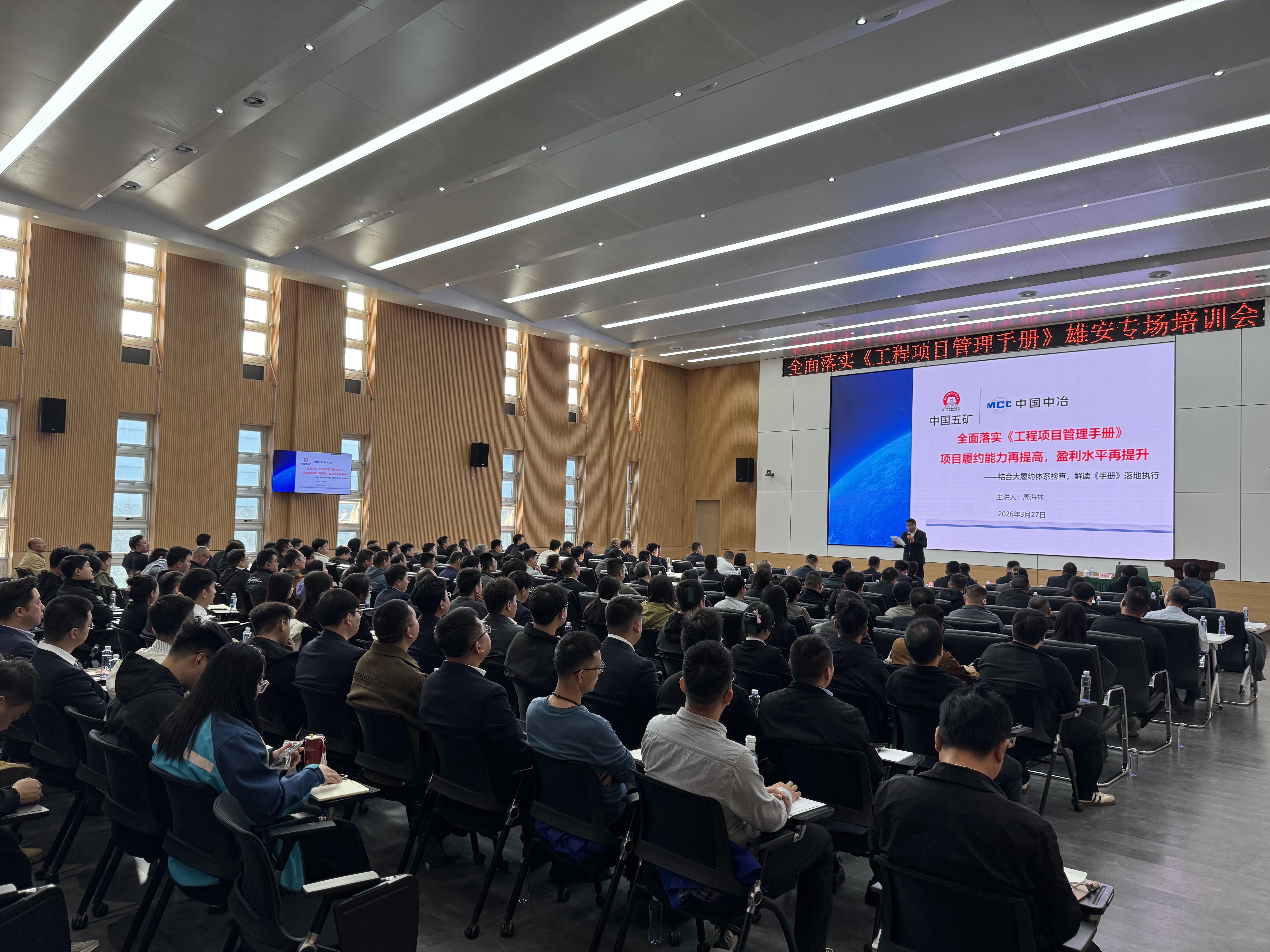 在高質(zhì)量推進(jìn)雄安新區(qū)建設(shè)和發(fā)展的關(guān)鍵節(jié)點(diǎn),在雄安新區(qū)推進(jìn)城市化進(jìn)程的重要時期,為貫徹中國中冶2026年度工作會議及中國中冶2026年復(fù)工復(fù)產(chǎn)會議相關(guān)精神,全面推進(jìn)《中國中冶工程項目管理手冊》落地實施,中冶雄安指揮部與項目履約管理部于3月27日在雄安新區(qū)聯(lián)合舉辦《工程項目管理手冊》雄安專場培訓(xùn)會。中冶駐雄安各分支機(jī)構(gòu)及項目團(tuán)隊200余名管理骨干參會,由中國中冶項目履約管理部授課。